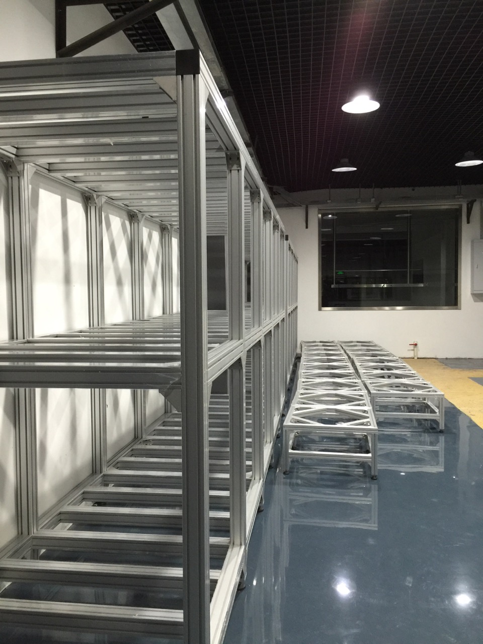 了解朱經(jīng)理的項目需求后,我們立刻對朱經(jīng)理項目進行設計,朱經(jīng)理的項目施工在崇明中華鱘夢園,約有200平方的占面積,每個定制鋁型材框架,高3米,長15米的,承載力要達10噸,我們整個鋁框架的方案全部采用歐標80120鋁型材做立柱,8080鋁型材做橫梁,結構連接采用12.9級高強度不銹鋼螺栓+打孔連接,并外面用直角件加固連接保確承重安全及結構穩(wěn)定。工藝,是加工好后,現(xiàn)場施工。自方案設計到生產(chǎn)總15天,并在5天內完成上門施工。